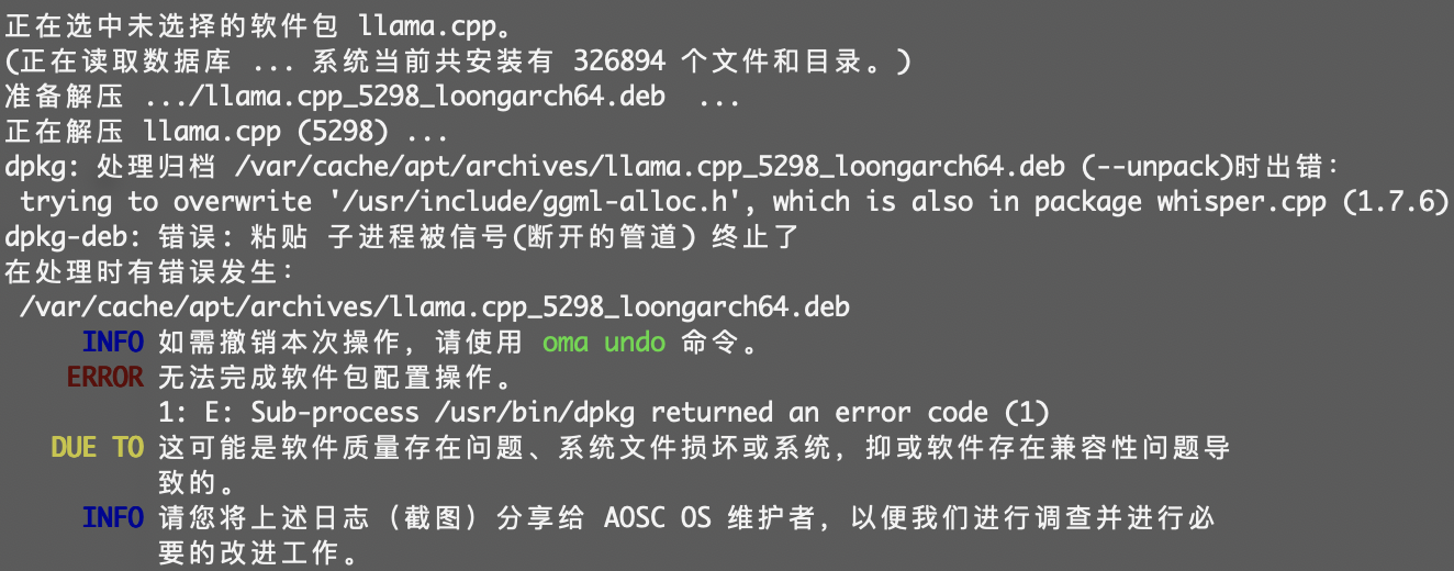 安装 whisper.cpp 后再安装 llama.cpp 报错,卸载后可以安装