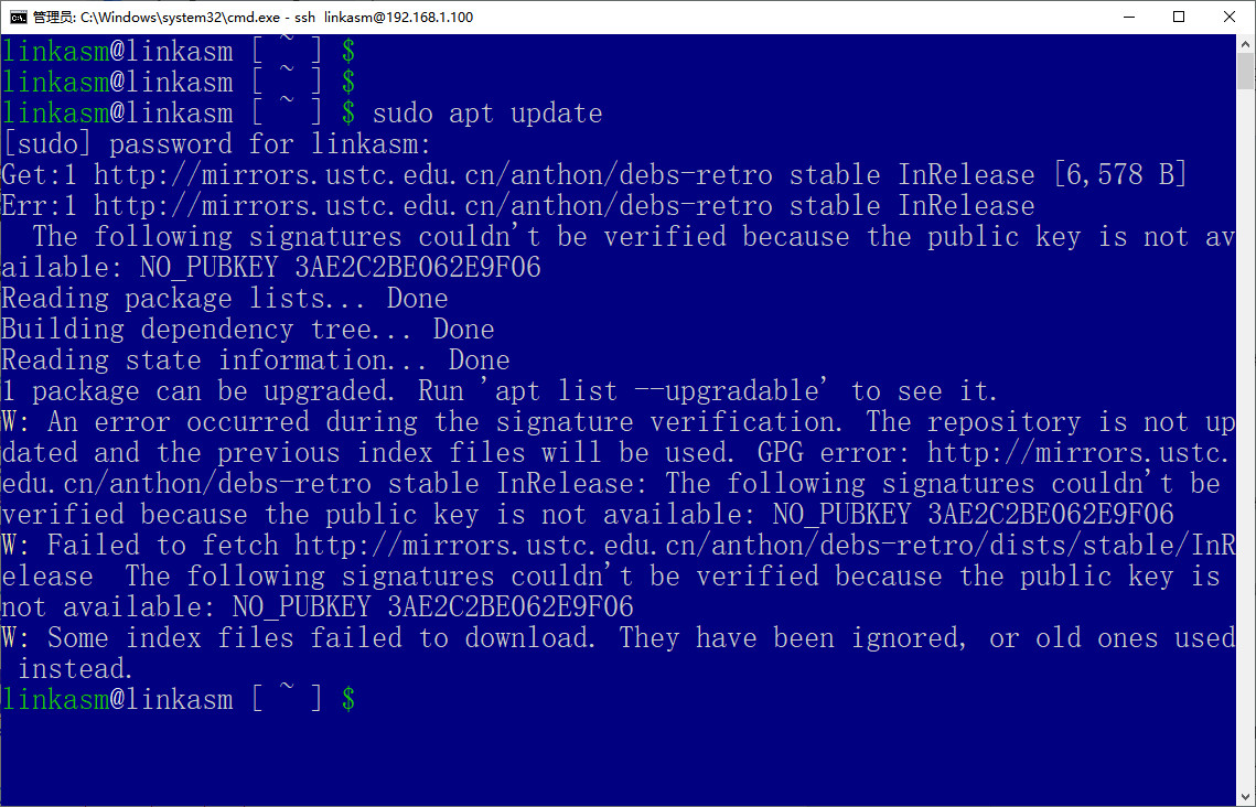 龙芯2f逸珑8101主机aosc-retro系统apt update出现NO_PUBKEY错误