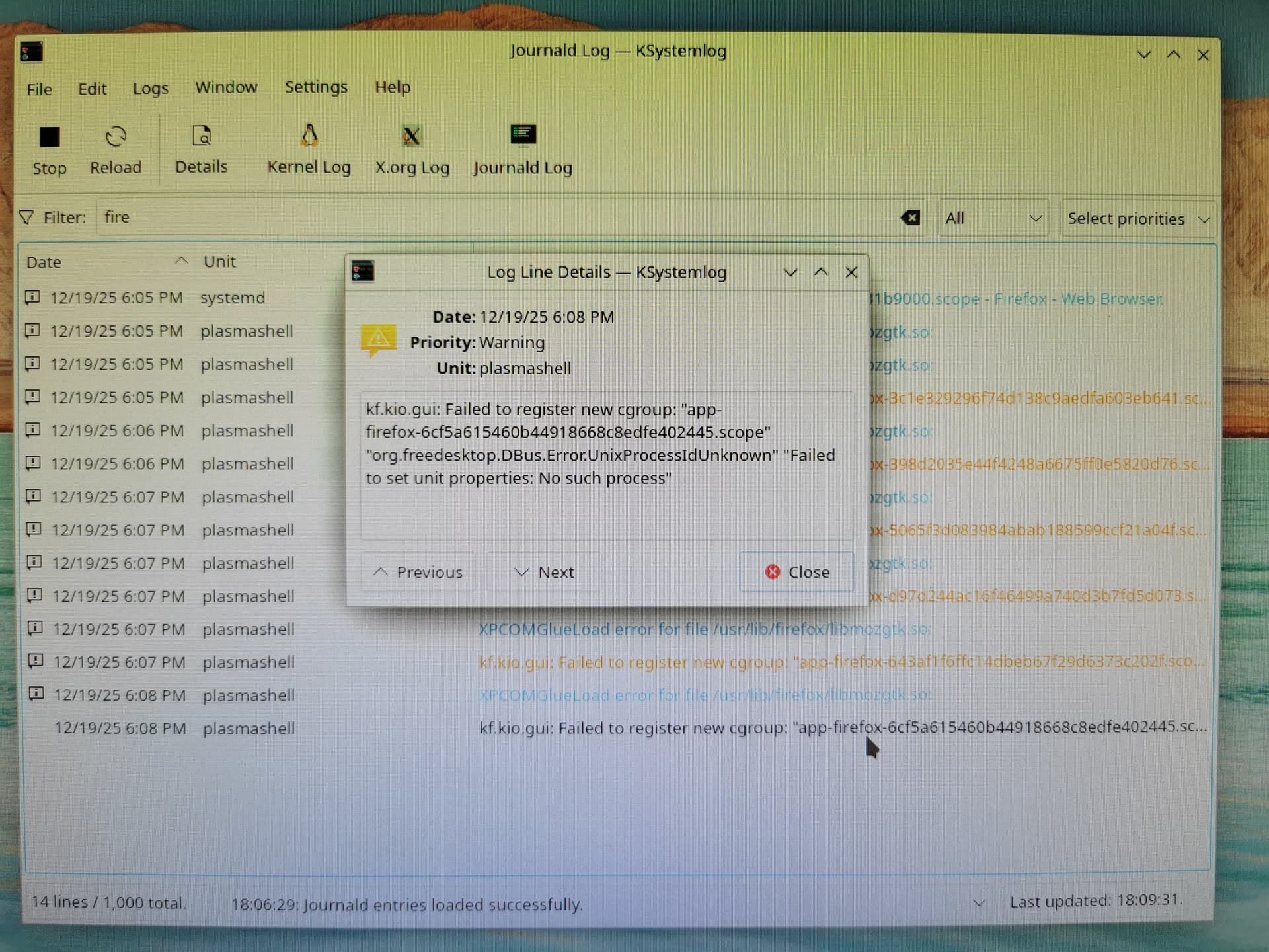 Control Group: /user.slice/user-1000.slice/user@1000.service/app.slice/app-firefox-8c7b8cc82b0448008f5c2aa3d8ae7386.scope